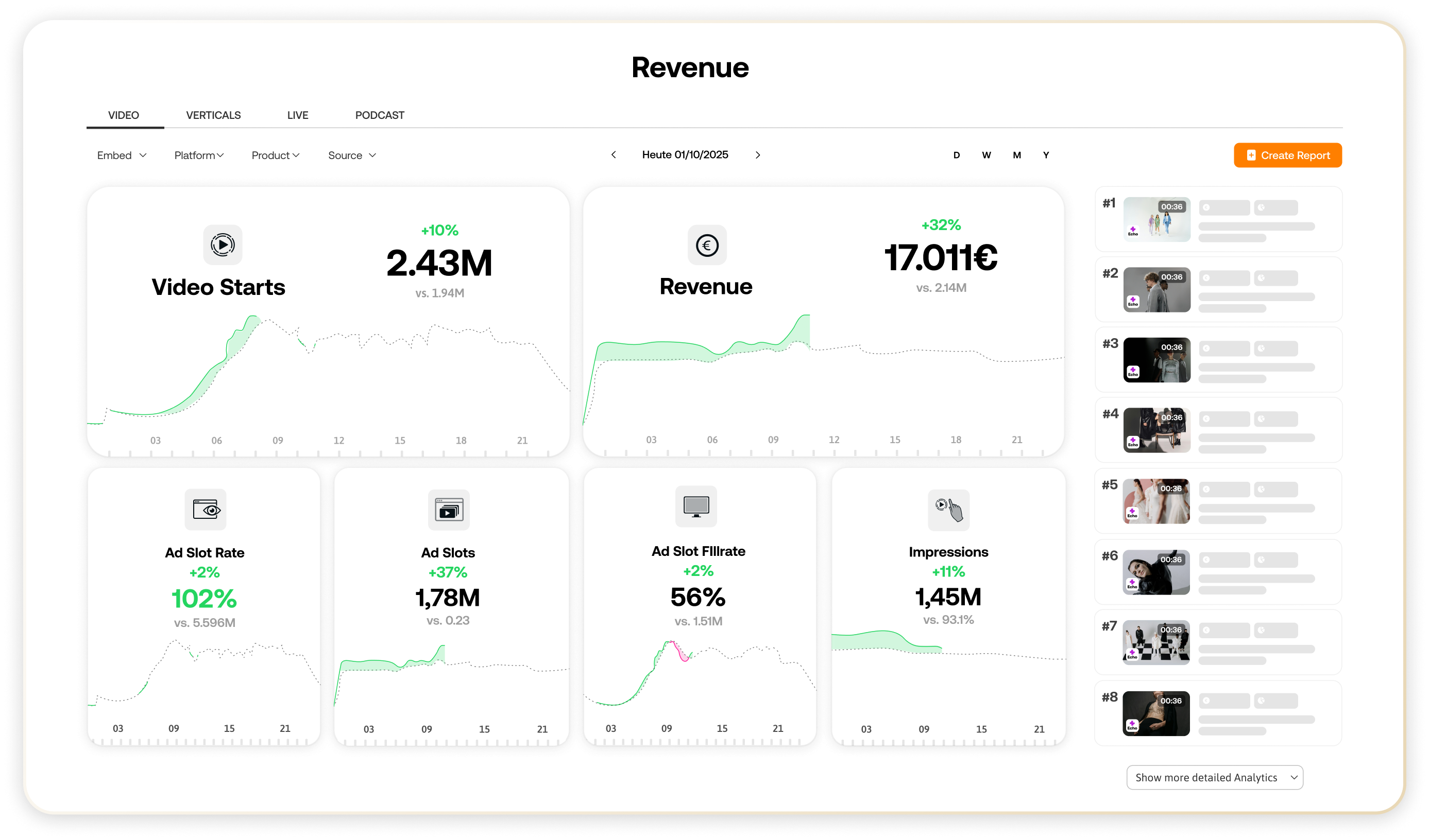 Monitor impressions, CTR, and conversions in real time—for precise optimization of video ads.
