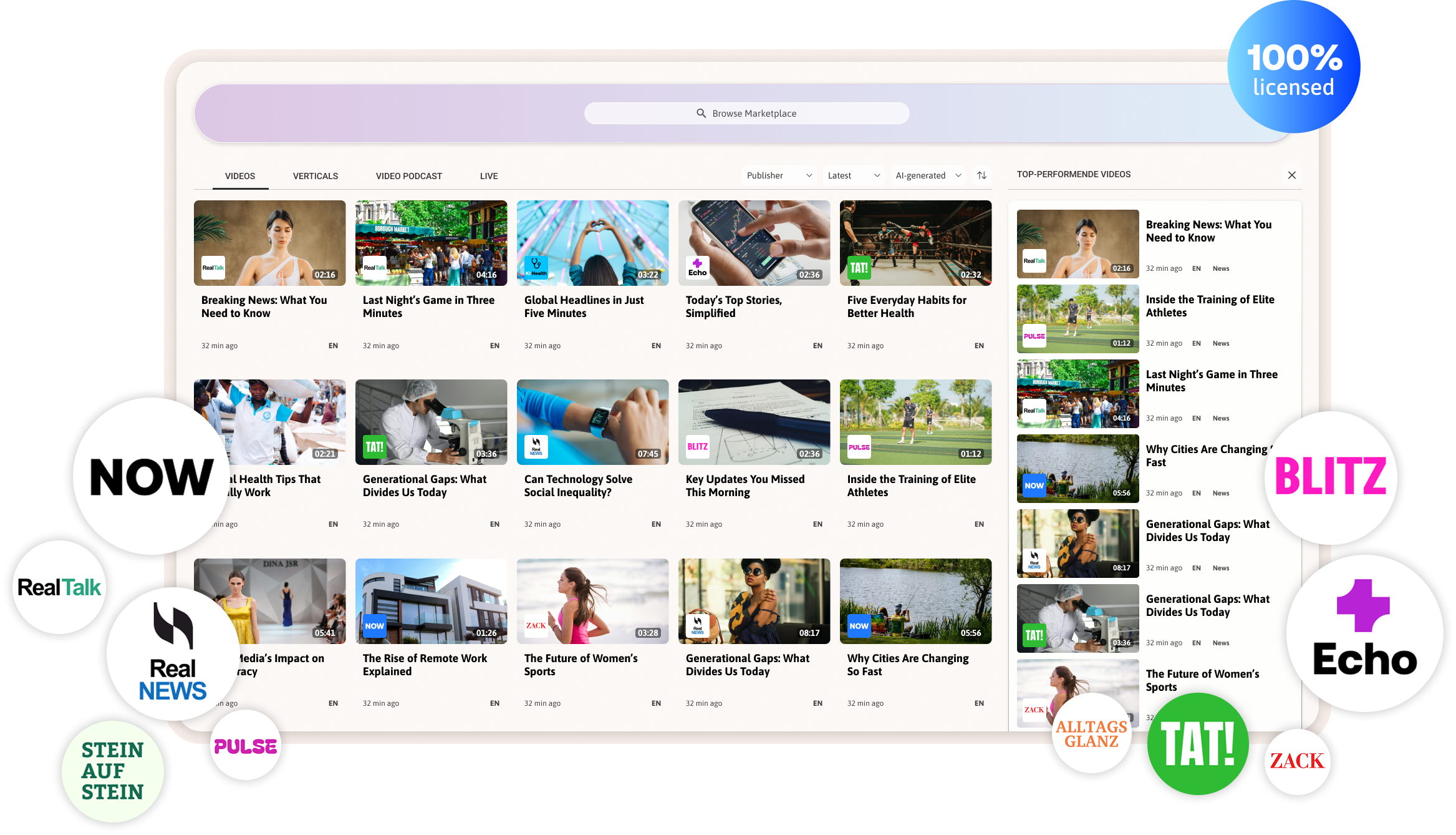 SuperNext connects publishers to a curated video content marketplace. Find, license, and monetize high-quality videos that fit your audience—ready to use, no production costs, no upfront investment.