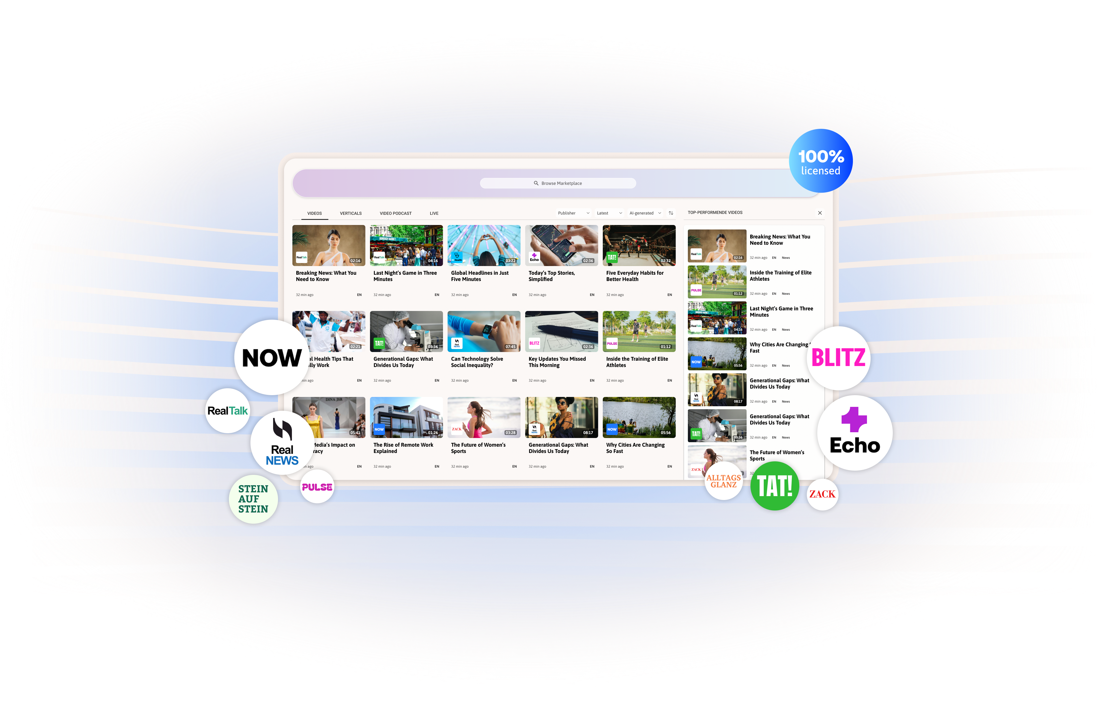 Where content meets reach—for an instant boost. Whether you bring content or distribution, the Marketplace brings both sides together. SuperNext handles licensing, so you can get started right away. Upload, share, and embed videos, verticals, podcasts, and livestreams—all in one place.