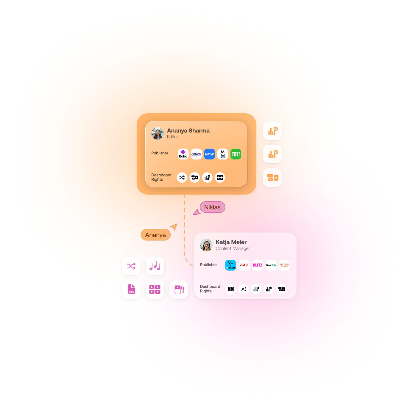SuperNext passt sich deinem Setup an – vom Solo-Creator bis zum Live-Redaktionsteam. Du steuerst, wer was übernimmt, und regelst Aufgaben, Zugriffe und Rollen direkt im Dashboard.