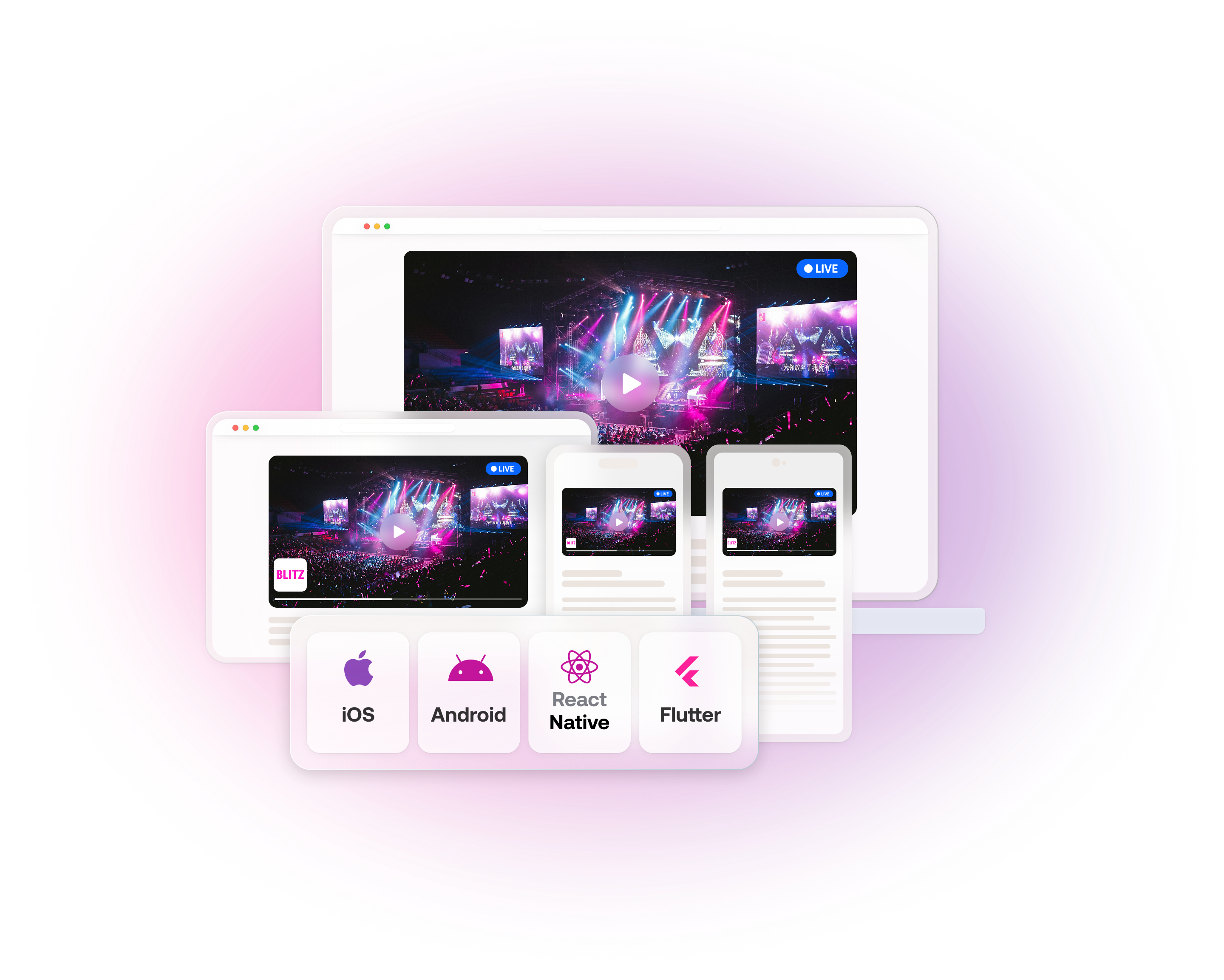 Mit SuperNext integrierst du Livestreams reibungslos in Website & App. Ob mobil, Desktop oder nativ: sofort startend, stabil, überall erreichbar.