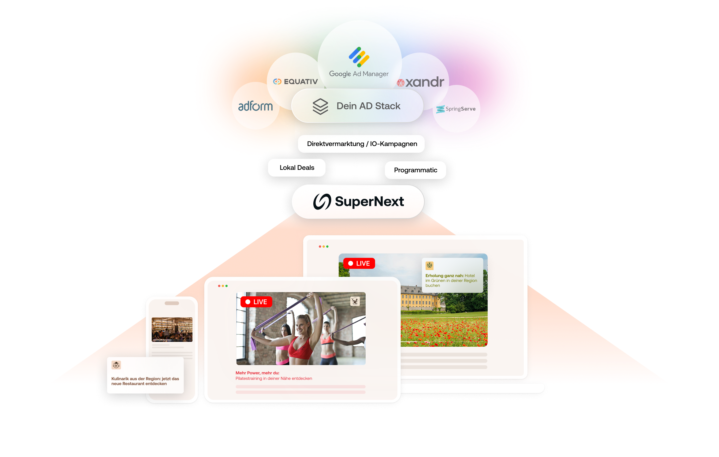 Du hast dein eigenes Vermarktungs-Setup – und willst volle Kontrolle behalten? SuperNext integriert sich nahtlos in deinen bestehenden Ad Stack – ob GAM,