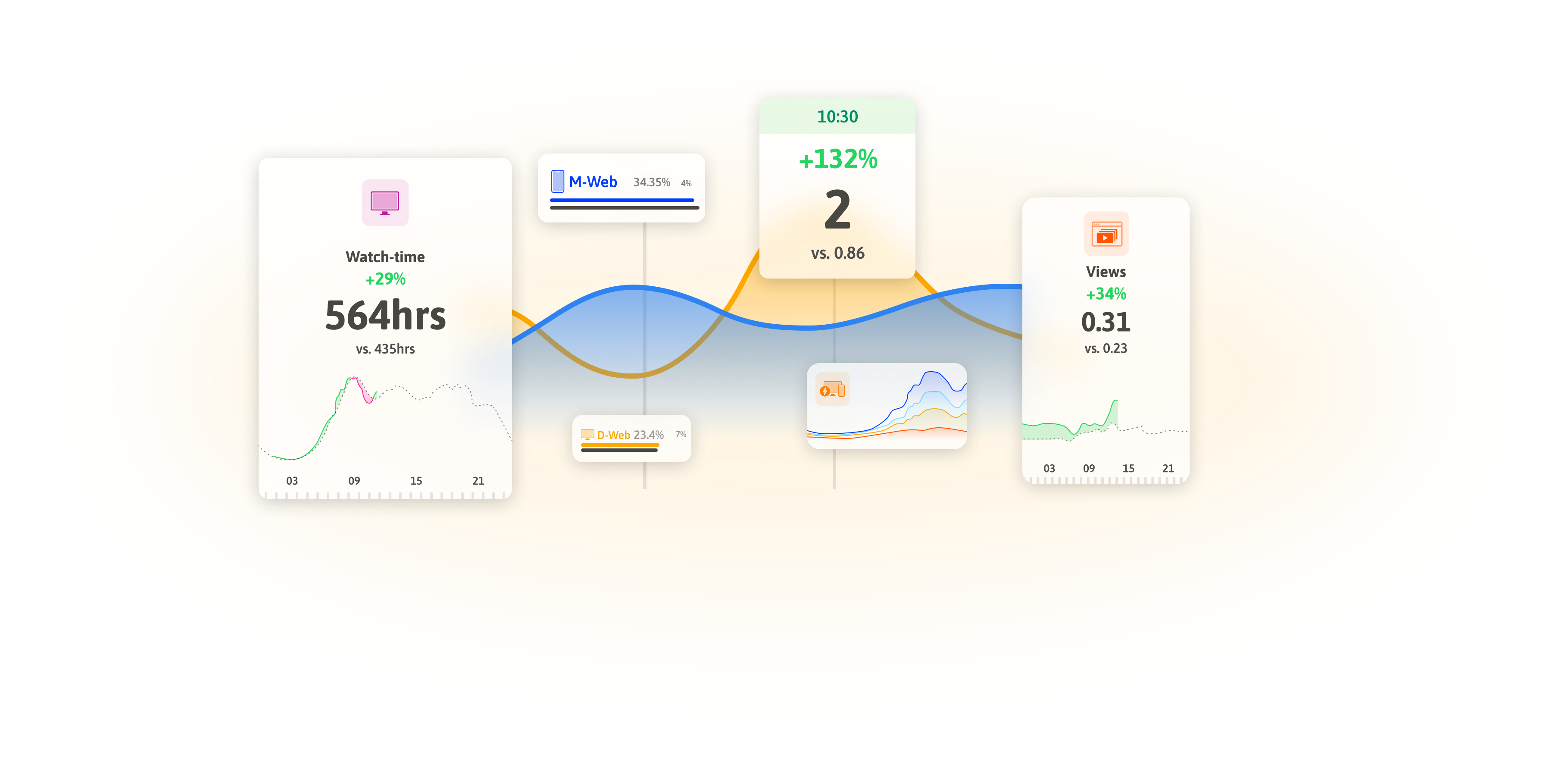 SuperNext zeigt dir, was dein Livestream wirklich leistet – in Echtzeit und im Rückblick. Verfolge Views, Watchtime, Werbeleistung und gleichzeitige Zuschauer mit detaillierten Insights, flexiblen Reports und offenen APIs.