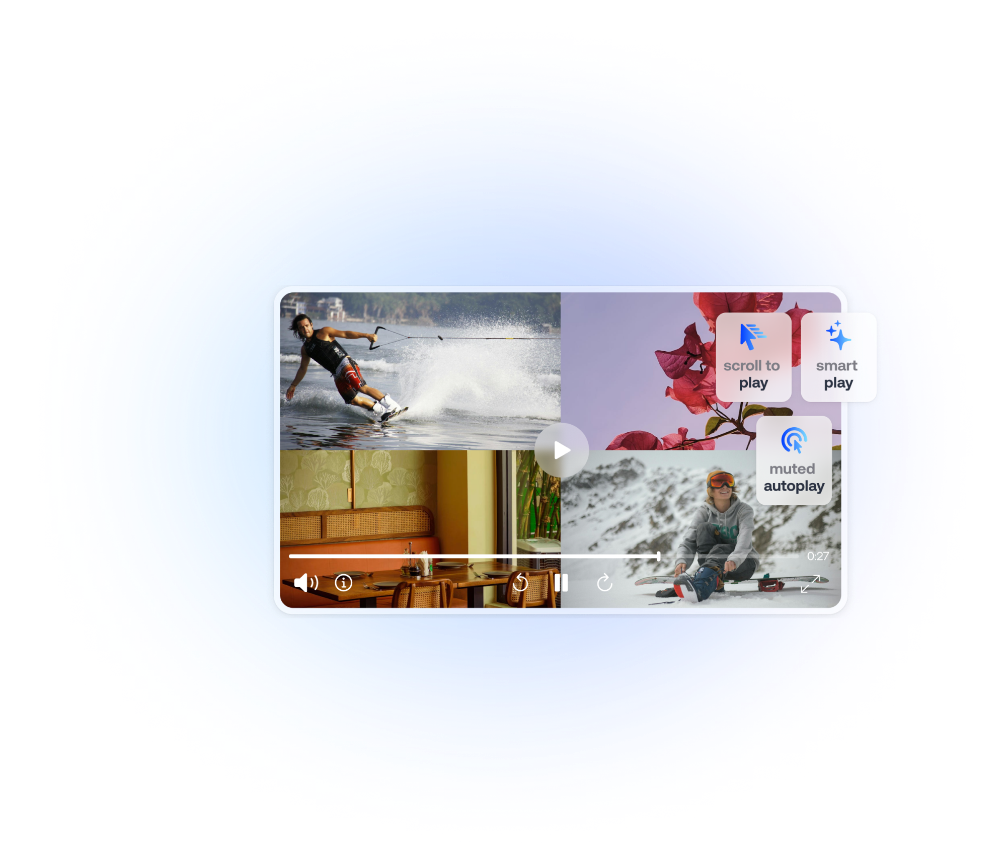 Videos starten stumm beim Scrollen, pausieren beim Herausfahren und laufen skalierbar im Content Stream.