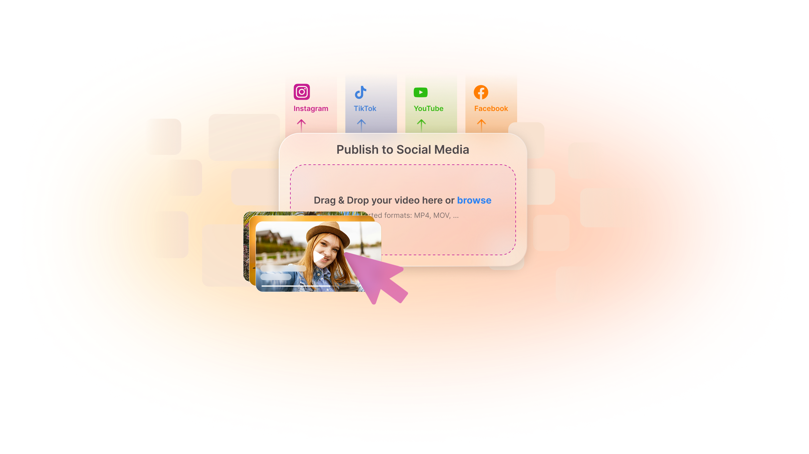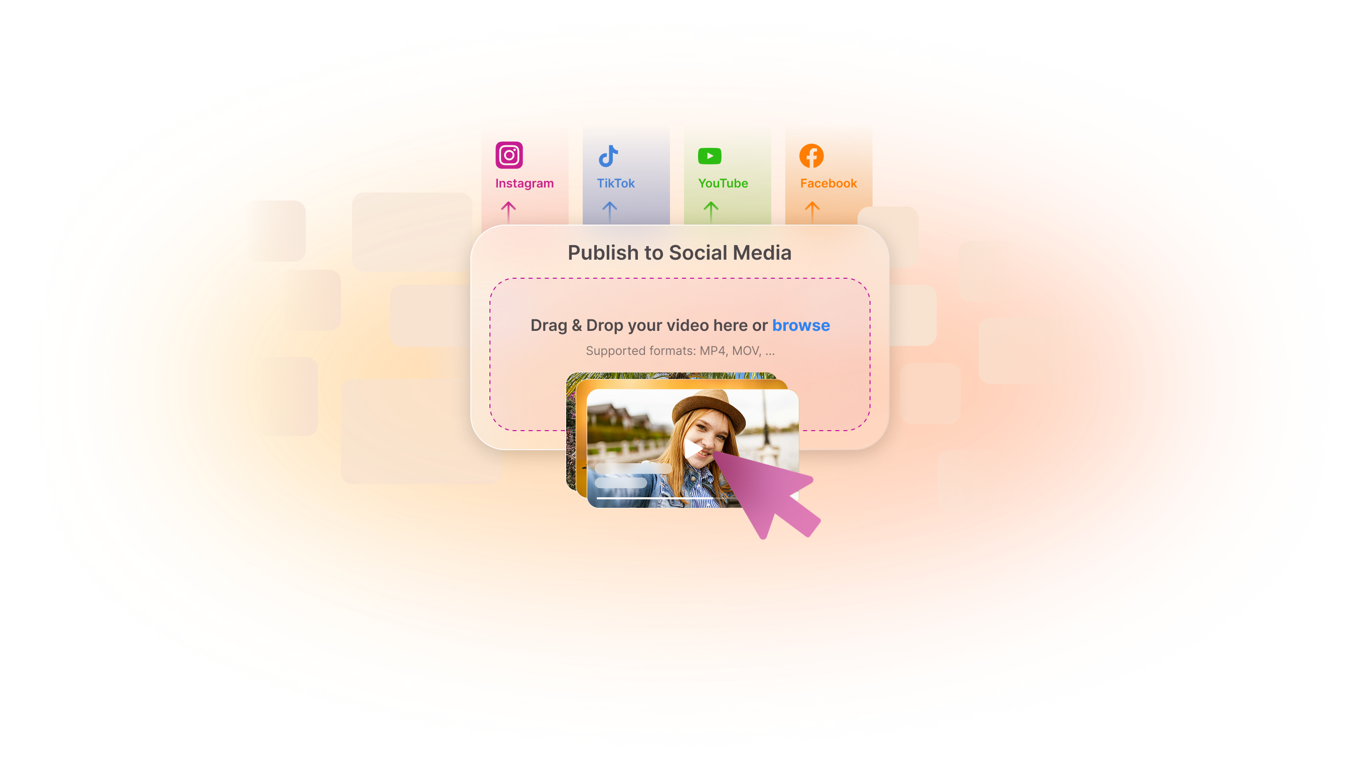 Spare dir Copy & Paste und veröffentliche Videos direkt aus deinem Workflow – auf Instagram, TikTok, YouTube oder Facebook. Alles zentral, nahtlos und zeitsparend.