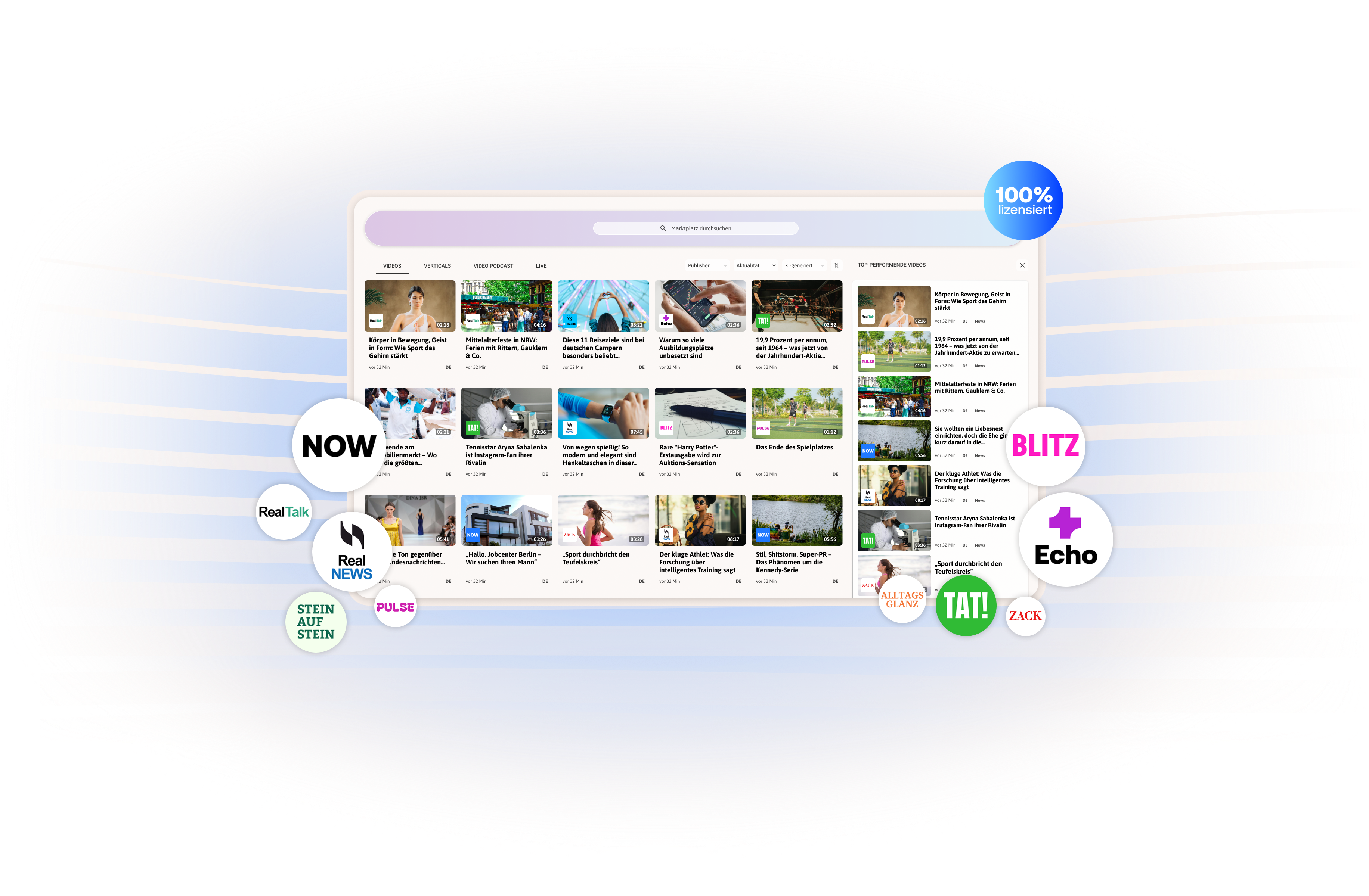 Du suchst passende Videos für deine Publikation, willst aber nicht selbst produzieren? Im Marktplatz findest du kuratierte, hochwertige Inhalte von ausgewählten Medienpartnern. Passend zu deiner Zielgruppe und Region. Einfach auswählen, übernehmen und veröffentlichen.