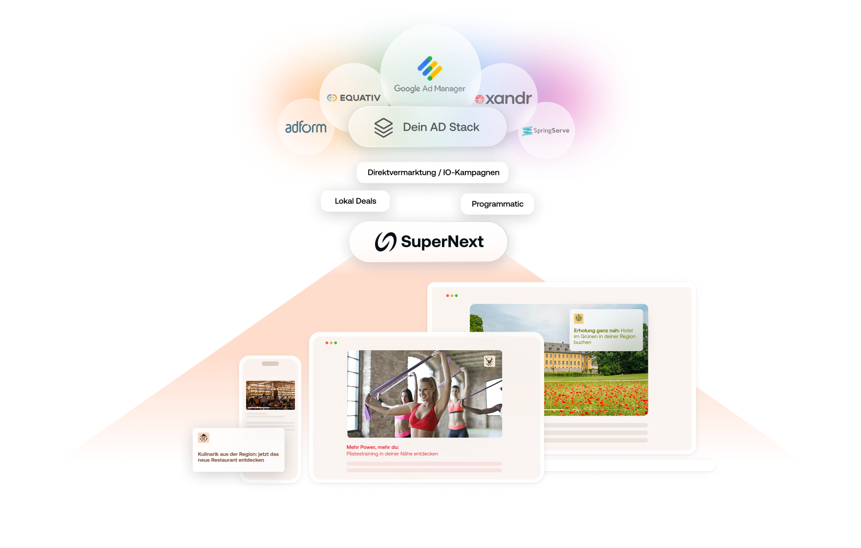 Dein Fokus liegt auf Content - wir übernehmen die Vermarktung. SuperNext bündelt hochwertigen Demand in einem performanten Setup und übernimmt Ausspielung, Optimierung und Abrechnung für dich. Du konzentrierst dich auf Inhalte, wir sorgen für die Vermarktung – voll automatisiert, transparent und nahtlos integriert.